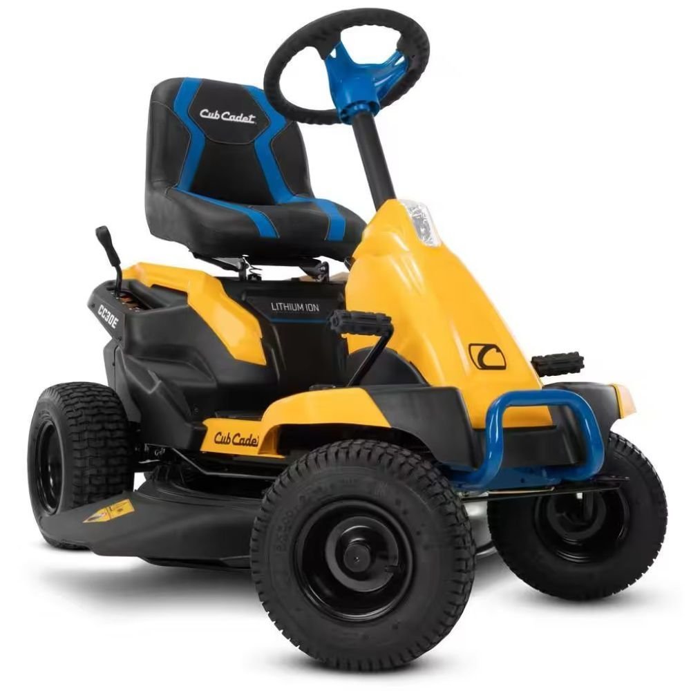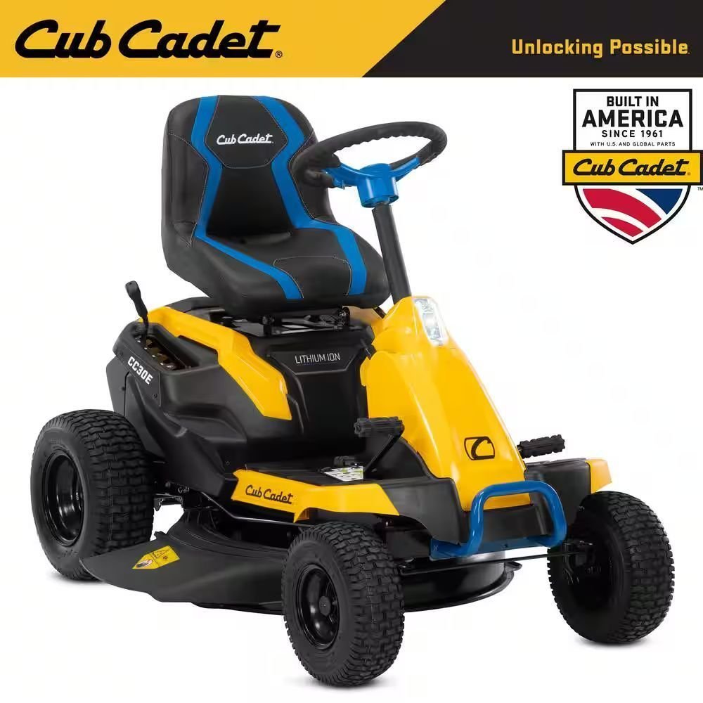 The CC30E electric riding lawn mower is equipped with the latest battery technology that provides a quiet operation and extended run time with rapid recharge and no power fade, delivering uncompromising power, minimal maintenance and the cut quality you can expect from its gas counterpart. A 30 in., single blade cutting deck can power through up to 1-acre without any power fade. Recharge quickly in just 4-hours. Ride in comfort with a high-back seat and 2 USB charging ports. This hassle-free, easy-to-use mowing experience is all backed by an industry leading warranty, 3-year limited residential and a 4-year limited battery.